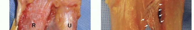 - Noda K, Goto A, Murase T, et al. Interosseous membrane of the forearm: an anatomical study of ligament attachment locations. J Hand Surg Am 2009;34(3):415-422.