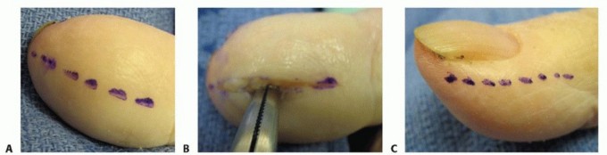 - Bednar MS, Lane LB. Eponychial marsupialization and nail removal for surgical treatment of chronic paronychia. J Hand Surg Am 1991;16:314-317.