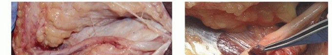 Dissect through the fat, down to the level of the medial epicondyle.