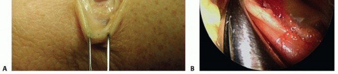 Dissection ▪ Avoid cutting the medial brachial and antebrachial nerves. Damage to these nerves is the most common cause of pain after cubital tunnel release.9,161. Make an adequate proximal dissection: Follow the nerve to the crossover of theanterior to posterior compartment, where a thin or thick fascial band is present at the septum, or, rarely, the arcade of Struthers. Make certain the tourniquet is high enough to reach this spot, usually 5-8 cm above the epicondyle.2. Make an adequate distal dissection: Follow the nerve several centimeters into the muscle bellies to ensure a full release, including the fascia of the FCU encasing its branches.Transposition ▪ Preserve the longitudinal blood supply to the nerve.3. If transposing the nerve, ensure that a new point of compression is not created. Compression may be created at the following sites: proximally at the crossover from anterior to posterior, the intermuscular septum just proximal to the medial epicondyle, the flexor pronator mass if submuscular or intramuscular transposition is performed, and the entrance to the FCU muscle bellies.