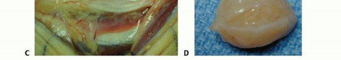 TECH FIG 1 • A. Nerve fascicles and fascicular groups are displaced by a schwannoma. B. The tumor may be “shelled out” from between the splayed fascicles. C. Intact fascicles after tumor resection. D. Specimen.