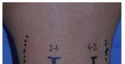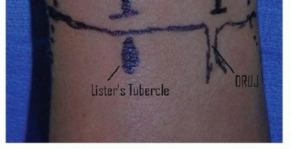 TECH FIG 1 • A. Sample incisions for open dorsal drainage of the IP, MP, and radiocarpal joints. B.