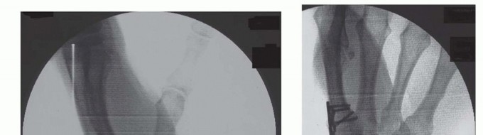 Although we prefer plate fixation, single or multiple smooth Kirschner wires, tension band wiring, cerclage wiring, staples, compression screws, and other types of plate and screw constructs have all been usedwith documented success.9Conflicting reports of union rates are reported when comparing Kirschner wires to more rigid fixation devices such as plates and screws.8,11P.1065