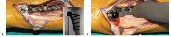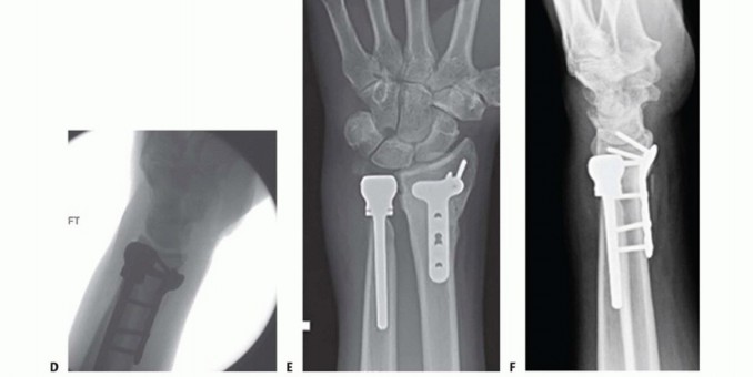 The forearm is immobilized in neutral rotation and held in a supportive long-arm or Muenster-type splint or cast for 3 weeks.Active range of motion of the wrist and forearm is initiated at 3 weeks.A removable splint is required between therapy sessions for 3 weeks.Therapy is advanced as tolerated after 6 weeks, with strengthening starting only after functional wrist and forearm motion has been obtained.For a patient with rheumatoid arthritis, poor-quality soft tissue coverage, or mild instability intraoperatively, immobilization in supination for up to 6 weeks must be considered.Postoperative radiographs should be obtained at 6 weeks, 6 months, and then yearly.