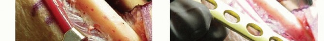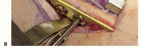 TECH FIG 4 • A. Osteotomy compression. B. An interfragmentary lag screw is placed through the plate.