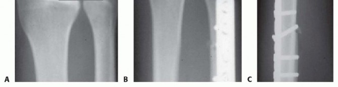 Wound infection and osteomyelitis (rare) Hardware fracture (rare with 3.5-mm plate) Hardware failure with very osteopenic boneDelayed union rates in smokers (7.1 months for smokers vs. 4.1 months for nonsmokers)4Painful, prominent hardware: It is generally not necessary to remove hardware, but 3.5-mm compression plates seem to be removable at 6 to 9 months in symptomatic patients with a low risk for refracture whensequential sets of radiographs confirm healing of the osteotomy site.21