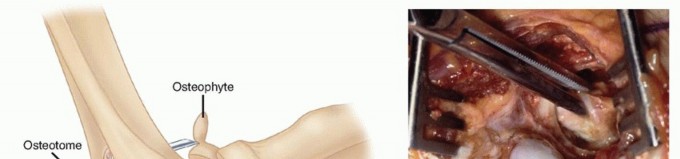 Primary osteoarthritis of the elbow is a relatively uncommon but disabling disorder that affects mostly middle-aged men who use the upper extremity in a repetitive fashion. Typically, patients are heavy manual workers or athletes. Osteoarthritis affects the elbow less frequently than other major joints.Early stages of arthritis of the elbow may be characterized primarily by pain at the extremes of motion, with some loss of terminal extension and flexion. Some patients present with pain carrying an object with the arm in extension. More advanced stages may present with pain and crepitus throughout the range of motion, stiffness, or locking. Rotation of the forearm may be spared, depending on radiocapitellar involvement.Radiographs show osteophyte formation on the coronoid and olecranon but relatively preserved joint space at the early stages. More advanced stages may be associated with significant joint space narrowing.Multiple operative techniques have been described for treatment of primary osteoarthritis of the elbow: débridement arthroplasty, interposition arthroplasty, the Outerbridge-Kashiwagi procedure, arthroscopic débridement, and total elbow replacement.Ulnohumeral (Outerbridge-Kashiwagi) arthroplasty was first described in 1978 and became popular a few years later. It is based on a posterior approach to the elbow, removal of any olecranon spur and bony overgrowth of the olecranon fossa, trephination of the fossa to expose the anterior capsule, and excision of the coronoid osteophyte.Recent advancements allow the procedure to be performed with arthroscopic fenestration of the olecranon fossa, débridement, and removal of loose bodies.