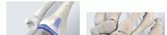 TECH FIG 4 • A. Insert the radius trial component into the prepared radius. B. Insert the carpal component and apply the trial poly bearing.