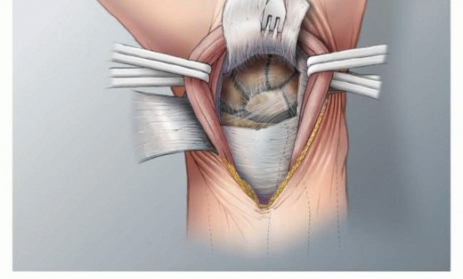 TECH FIG 1 • To expose the joint, the extensor retinaculum is elevated as a radially based flap and the joint capsule is raised as a distally based flap.