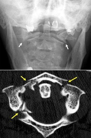 radiographic findings represent a type 1 traumatic odontoid fracture