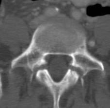 DISCUSSION: Scoliosis caused by osteoid osteomas are typically non-flexible curves where the osteoid osteoma occurs on the concavity of the curve. While peripheral osteoid osteomas, far away from the neural elements CAN be treated with radiofrequency ablation, treating osteoid osteomas of the spine with RFA needs to be done on a case by case basis - depending on how close the lesion is to the neural elements. Osteoid osteomas can occur in either the vertebral body or the posterior elements of the spine, but typically occur in the posterior elements. Histologically, osteoid osteomas of the spine are identical to those in the extremity.