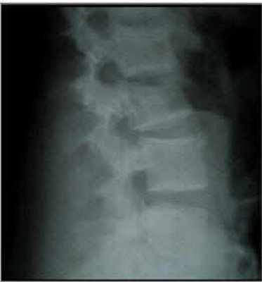 DISCUSSION: Childhood discitis is a continuum of spinal infections ranging from discitis to vertebral osteomyelitis with soft tissue abscesses. Loss of normal lordosis is the first radiographic sign and is often present before any bony changes can be seen.
