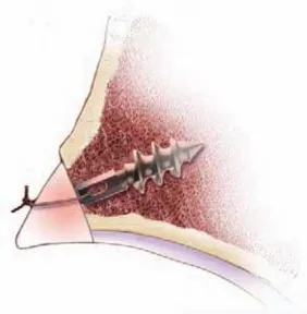 2. يُجرى وضع المراس تحت الرؤية المباشرة، حوالي 2 مم من واجهة العظم والغضروف.