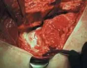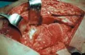 - باستخدام سكين، يُفصل الجزء العظمي تحت السمحاق من الداخل إلى الخارج.