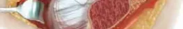 - الشكل التقني 6 • أ. تُفحص كروية رأس الفخذ باستخدام قالب كروي. عندما يصل طرف القالب إلى الجزء اللا كروي، أو النتوء، يُرفع عن الغضروف. ب. رأب العظم والغضروف الفخذي. ج. منظر داخل الجراحة في الورك الأيسر. تدخل الشرايين الشبكية الجانبية رأس الفخذ خلفيًا مباشرة للطرف الخلفي من *