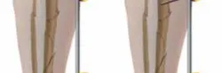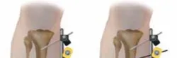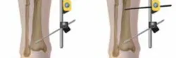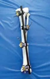- بدلاً من ذلك، يمكن توصيل مسماري الفخذ القريبين باستخدام قضيب واحد، ومسماري الظنبوب بقضيب ثانٍ. يمكن بعد ذلك معالجة هذين القضيبين لتحقيق رد للهضبة، ثم يتم ربط وإحكام قضيب ثالث يربط بين القضبان الفخذية القريبة والظنبوبية البعيدة للحفاظ على الرد.