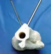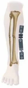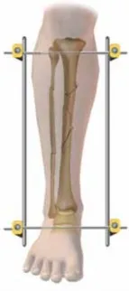 - مثبت بمسمارين: تثبيت مؤقت لكسور جسم الظنبوب (القصبة)، بيلاون، أو الهضبة *
