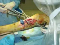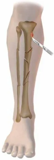 - تُعد كسور جسم عظم الساق (القصبة) المفتوحة في المقام الأول مرشحة للتسمير النخاعي المغلق، ولكن هناك حالات يستدعي فيها الأمر التثبيت الخارجي.