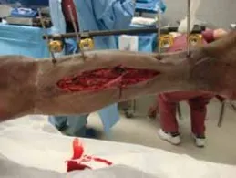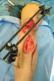 - شكل 4 • A. إصابة مفتوحة واسعة من الدرجة 3b تتطلب وضع مسمار حكيم لتجنب وضع المسامير مباشرة في الجرح المفتوح. *