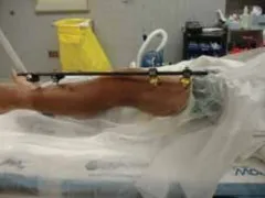 - يتم وضع مكثف الصور (fluoroscope) مقابل الساق العاملة. وهذا يساعد في التصوير الفلوروسكوبي لعظم الفخذ