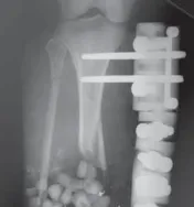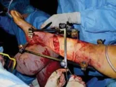 - تبدو شدة إصابة الأنسجة الرخوة بدلاً من اختيار الغرسة هي العامل السائد الذي يؤثر على النتائج. يُستخدم التثبيت الخارجي بشكل تفضيلي في المرضى الذين يعانون من أشد إصابات الأنسجة الرخوة أو تلوث الجروح.