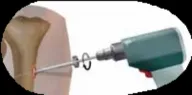 - يتم وضع مسمارين من خلال مجموعة المسامير البعيدة عن الكسر وإحكامهما.