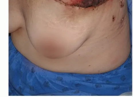 - أحيانًا، تمتد الأورام الكبيرة إلى الجلد المغطي وتتطلب استئصالًا كتليًا مع مساحة كبيرة من الجلد. ينتج عن ذلك عيب في الجرح لا يمكن إغلاقه بشكل أولي وسيتطلب ترقيعًا جلديًا أو يُترك لإغلاق الجرح المتأخر. *