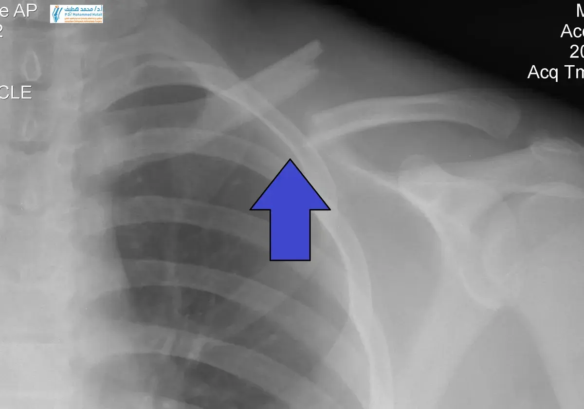 1. يحدُث كسر الترقوة غالبا بعد السقوط على ذراع ممدودة أو الكتف أو بعد تلقي ضربة مباشرة.