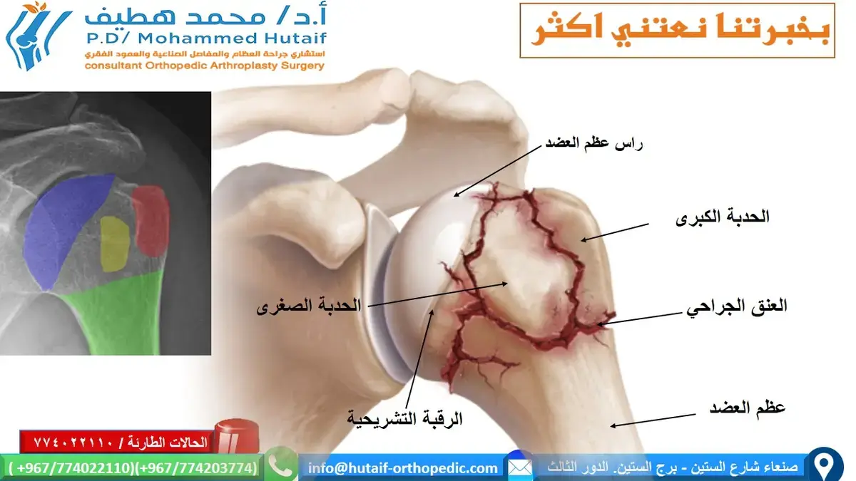 تحدث كسور العضد في النهاية العلوية من عظم الطرف العلوي، وهي تُؤثر في مفصل الكتف.