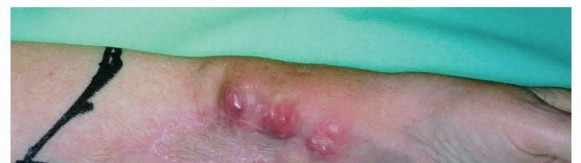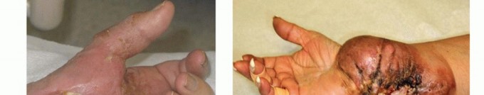 FIG 4 • Extensive squamous cell carcinomatosis of the forearm. Above-elbow amputation was done.