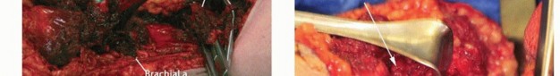Jacob Bickels Yair Gortzak Yehuda KollenderMartin M. Malawer]Tumors of the upper extremity may cause extensive soft tissue and bone destruction and extend into the main neurovascular bundle. In those extreme situations, limb sparing may not be feasible, and amputation is required to achieve wide margins of resection and local tumor control.Above-elbow amputations may be required for advanced soft tissue and bone sarcomas of the forearm and around the elbow (FIG 1A); below-elbow amputations are performed for such tumors of the forearm and the hand (FIG 1B).Above- and below-elbow amputations are rarely done because the upper arm, elbow, and forearms are rare location for musculoskeletal tumors and because tumors at that site are noticed in relatively early stages and in most cases are resectable. Furthermore, administration of preoperative chemotherapy and availability of isolated limb perfusion have allowed to control the majority of patients that present with a large tumor.Nonetheless, above- and below-elbow amputations retain a definitive role in the management of soft tissue and bone tumors of the upper extremity.