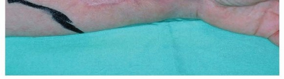 TECH FIG 4 • (continued) E. Closed surgical wound over an epineural catheter which provides continuous flow of local analgesics was installed into the nerve sheath to control postoperative pain.