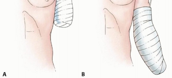 A rigid dressing is applied immediately postoperatively to decrease pain and edema and facilitate maturation of the stump (FIG 7). Care must be taken to adequately protect the skin that directly overlies the bone.Stump edema is rarely a significant problem in the upper extremity, and prosthesis training should begin as soon as possible after surgery.Continuous suction is required for 3 to 5 days, and perioperative intravenous antibiotics are continued until the drainage tubes are removed.Active and passive ranges of motion around the shoulder and elbow (if exists) are practiced as tolerated.