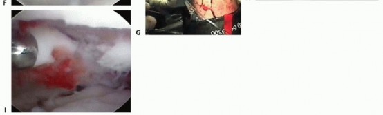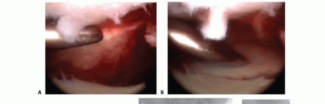 The joint will often be filled with synovitis and fibrin debris. A shaver is placed into the 6R position, and the joint is cleared of the debris to obtain adequate visualization.