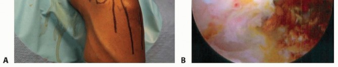 Elbow synovectomy surgically removes the thickened, inflamed, and painful synovium of the elbow joint.Synovectomy is commonly performed for rheumatoid arthritis, hemophiliac synovitis, synovial chondromatosis, and inflammatory arthropathies.In the past, synovectomy has been performed through an open arthrotomy, but currently, arthroscopic synovectomy is the treatment of choice.Compared with open synovectomy, arthroscopic synovectomy can be performed as an outpatient procedure, allows more rapid recovery, and offers visualization of the entire elbow joint and recognition of concomitant pathology.