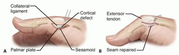 - Tonkin MA, Beard AJ, Kemp SJ, et al. Sesamoid arthrodesis for hyperextension of the thumb metacarpophalangeal joint. J Hand Surg Am 1995;20(2):334-338.