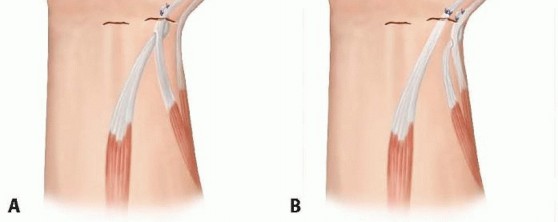 A small longitudinal incision over the distal-volar aspect of the forearm is performed. The FPL tendon is exposed and incised over the musculotendinous portion.The thumb IP joint is hyperextended until 1 cm of distal sliding of the FPL tendon is identified.The FPL may be lengthened by Z-lengthening of the FPL tendon, with 0.5 mm of lengthening for each degree of correction.11. Augmentation of Weak Muscles