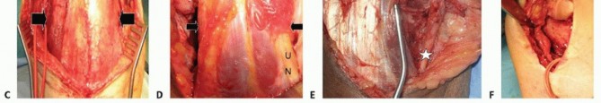 The ulnar nerve is transposed into an anterior subcutaneous location.