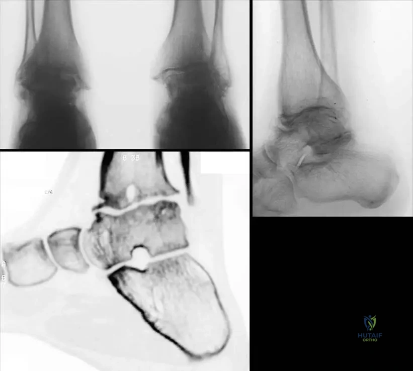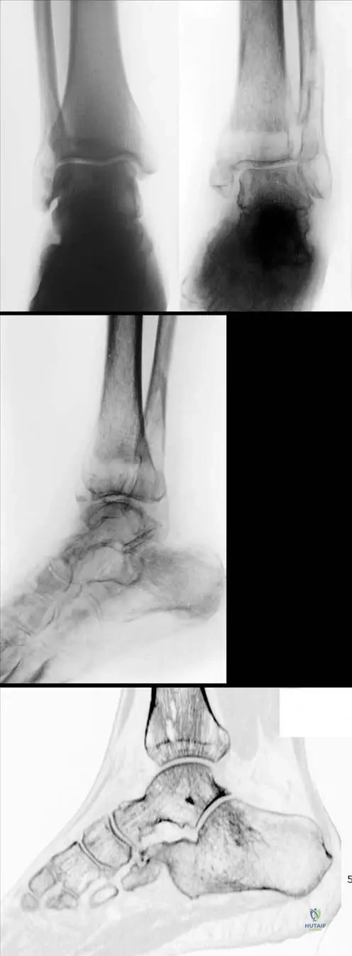A 58-year-old female presents with persistent pain, swelling, and stiffness in her left foot, which began after a minor ankle sprain three months ago. Initial radiographs taken shortly after the injury were unremarkable. Current radiographs of the foot are obtained.