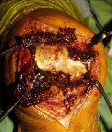 Rationale: Fig. 8.115, which shows a gross resection of a proximal femur, has the caption: "Note current jelly-appearance to tumor." This is a specific gross pathological description for myeloma. The other descriptions are characteristic of other types of tumors or normal tissue.