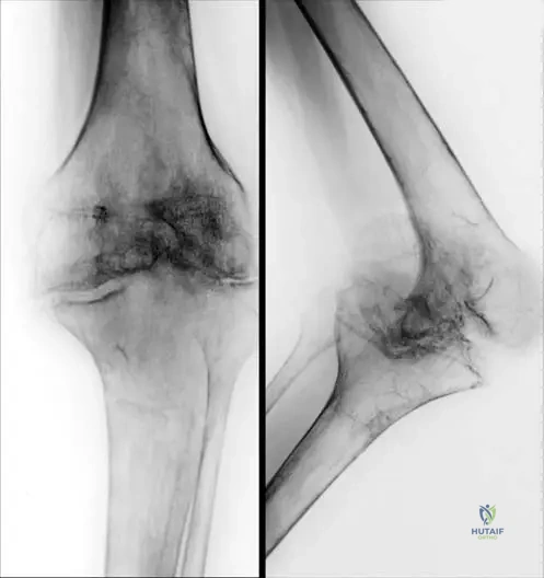 A 40-year-old male with a long-standing diagnosis of Camurati-Engelmann disease undergoes a skeletal survey. The radiographs show extensive sclerosis and cortical thickening. Which of the following images represents a definitive, late form of this condition, demonstrating involvement beyond just the long bone diaphyses?