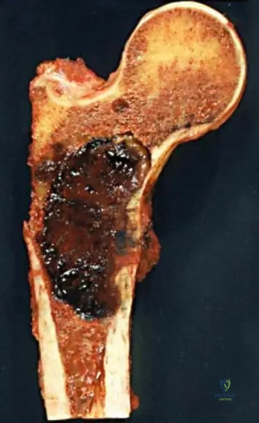 A 68-year-old female with a history of diffuse bone pain attributed to multiple myeloma reports a sudden, sharp increase in her right hip pain after a minor fall. Radiographs show a lytic lesion in the proximal femur.