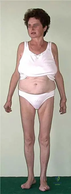 A 10-year-old boy with polyostotic fibrous dysplasia presents with a progressive limp and noticeable bowing of his right thigh. Radiographs confirm an expansile lesion in the proximal femur with a characteristic severe varus deformity.