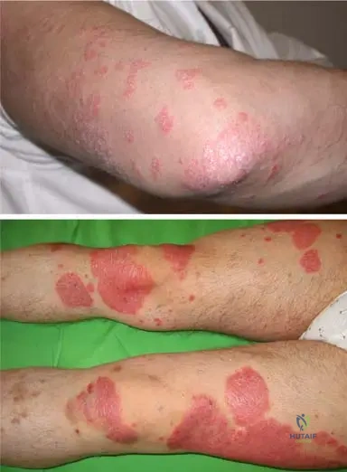 A 40-year-old male presents with a 6-month history of joint pain and swelling. He has a long-standing history of psoriasis. On examination, he has typical psoriatic skin lesions on his elbows and scalp. His DIP joints are swollen and tender, and he has dactylitis of his left index finger. Laboratory tests show negative rheumatoid factor. Which of the following is a characteristic feature of the skin lesions seen in this patient?