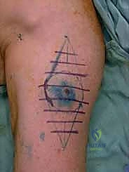This image shows the initial marking and pre-operative appearance of an invasive melanoma.