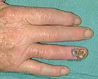 - Invasive: Amputation at the distal joint level (DIP for fingers, IP for thumb), if extent allows.