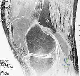 Here, fellows, you see a T2-weighted MRI revealing a large effusion, typical in a patient subsequently diagnosed with rheumatoid arthritis.