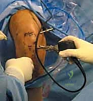 The shaver is now moved to the inferomedial portal, giving us access to the medial compartment.