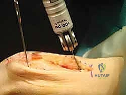 2. Plantar Visualization: Retraction of the plantar tissue, which we already performed for the longitudinal cut, is crucial here. It allows for direct visualization of the guidewire exiting the plantar cortex and ensures accurate placement.