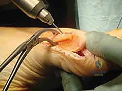 Crucially, make this longitudinal cut in the same plane as the plantar orientation of the metatarsal.